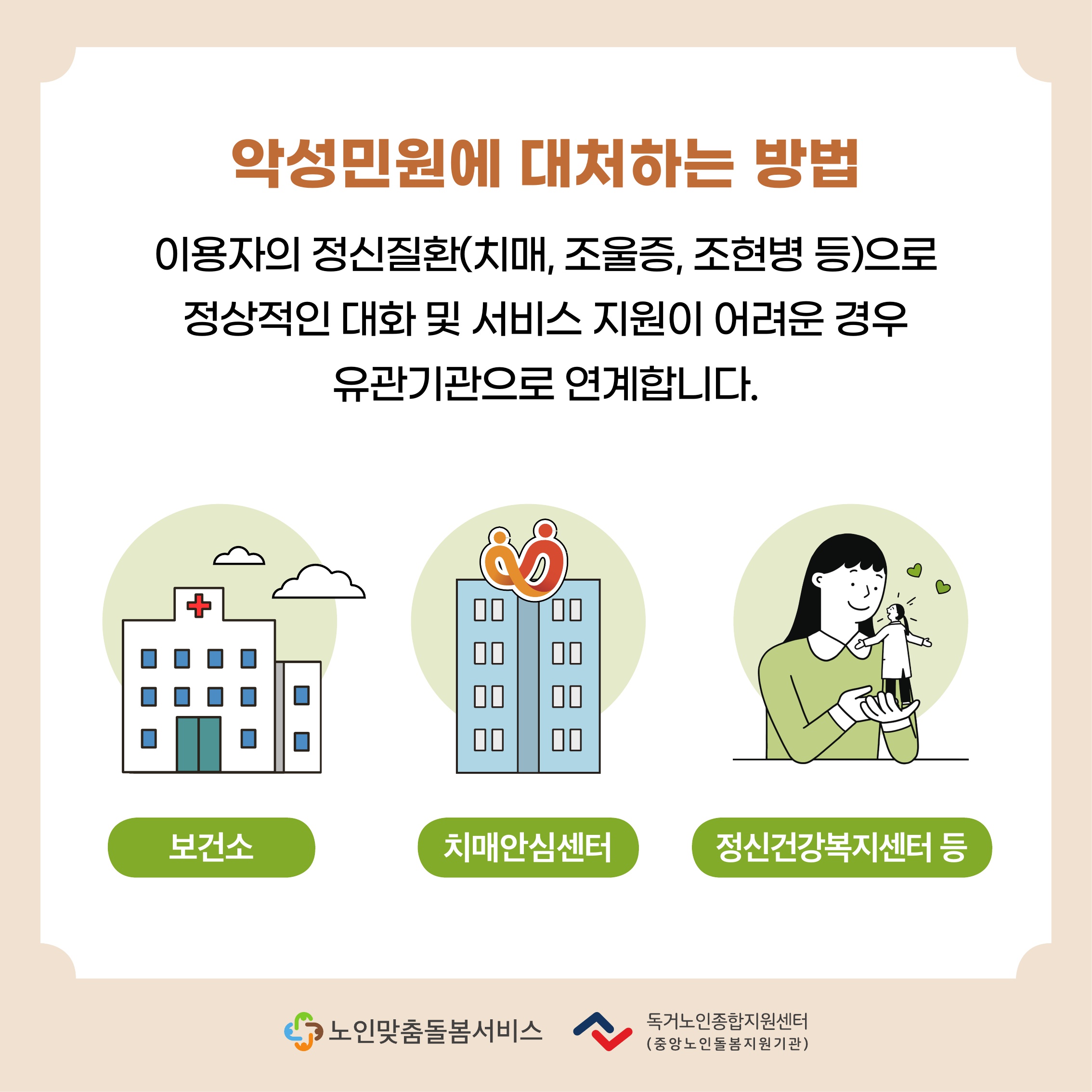 - 연계서비스: 주거 개선, 건강 지원, 민간 자원 활용 등