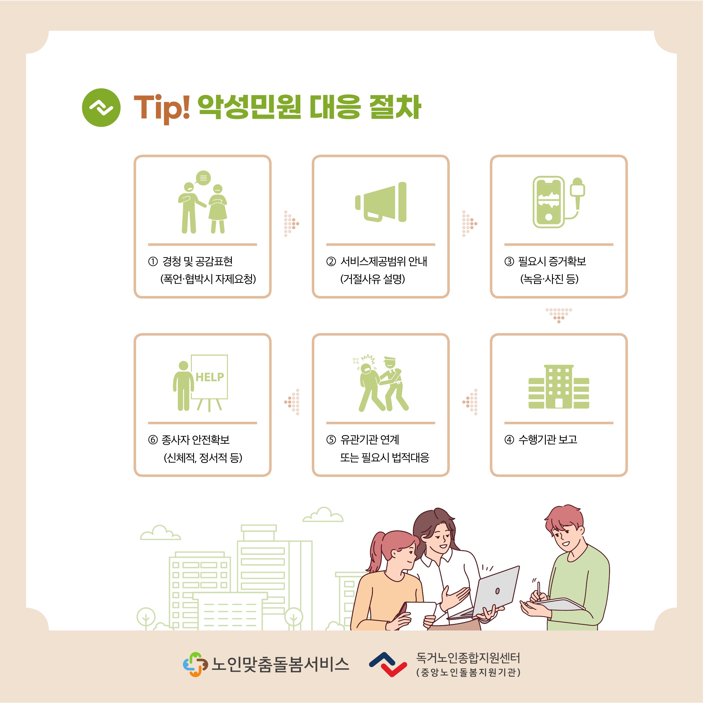 또한 노인맞춤 돌봄 서비스 현장에서 겪는 감정 노동과 스트레스를 관리할 수 있는 심리지원 프로그램도 중요한 부분입니다. 상담과 치료비 지원을 통해 종사자들의 정서적 안정을 도모함으로써 지속 가능한 돌봄 환경을 조성합니다.