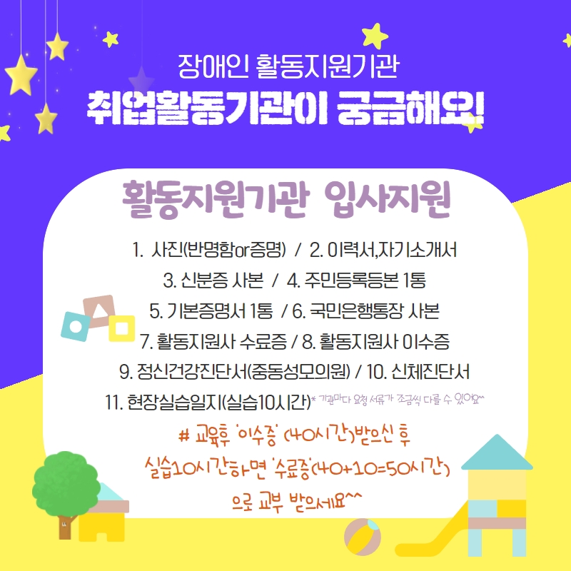 장애인활동지원사가 되려면 40시간의 표준교육과정을 이수해야 합니다. 교육비는 제공기관에서 지원하는 경우가 많으며, 교육 수료 후 바로 활동을 시작할 수 있습니다. 장애인활동지원사 시급과 근무 조건을 고려하여 자신에게 맞는 제공기관을 선택하는 것이 중요합니다.